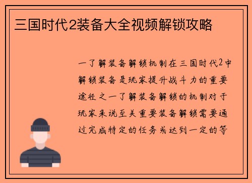 一、了解装备解锁机制 在三国时代2中,解锁装备是玩家提升战斗力的重要途径之一。了解装备解锁的机制对于玩家来说至关重要。装备解锁需要通过完成特定的任务或达到一定的等级来获得。每个装备都有不同的解锁条件,...